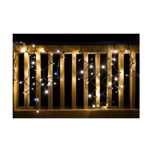 LED Eiszapfen sind das Highlight jeder Weihnachtsbeleuchtung. Auf einer Länge von 100 cm hängen 5 Schnüre mit zusammen 38 warmweißen LEDs herab. Durch die keilförmige Anordnung entsteht ein Effekt, der an lange Eiszapfen erinnert. Die Zapfenklette aus Serie Profi Line ist für den Innen- und Außenbereich geeignet. Verschönern Ihr Haus, Wände, Schaufenster, Zäune, Hecken und vieles mehr. Durch das praktische Koppelsystem können Sie die LED-Lichterkette erweitern. Dank der verwendeten Gummimantel-Leitungen hat die Kette eine lange Lebensdauer. Ein weiteres Plus: LEDs strahlen keine Hitze oder zellschädigendes UV-Licht ab und durch den geringen Verbrauch reduzieren Sie den CO2-Ausstoss. Die Stromersparnis beträgt bis zu 90 %. Verwenden Sie für den Anschluss entweder das kurze LED-Anschlusskabel oder das lange Anschlusskabel.